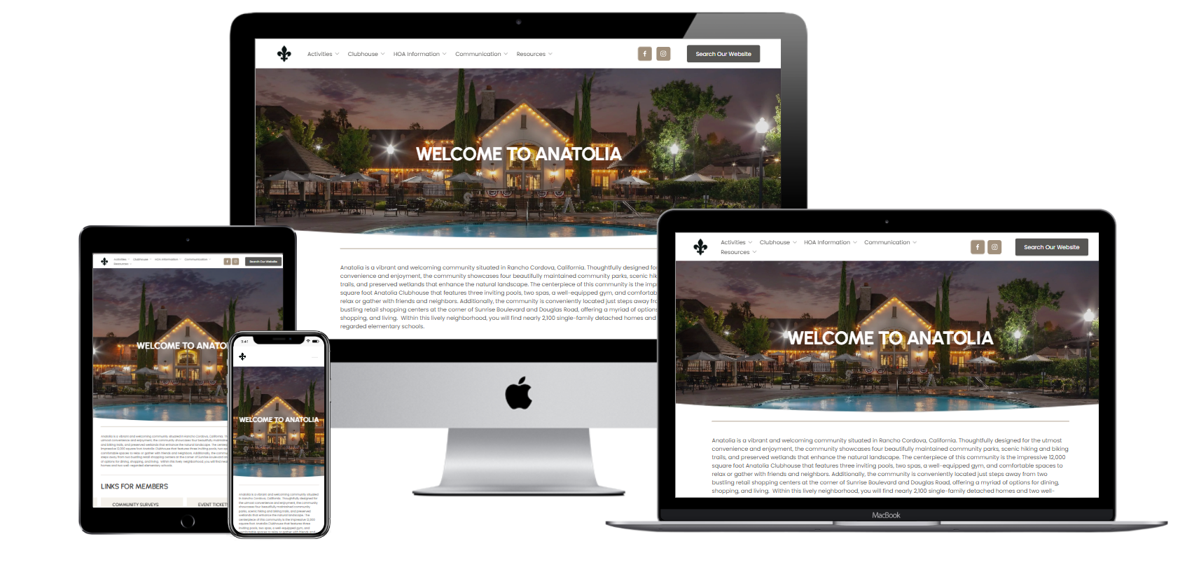 The Anatolia Homeowner’s Association is a member-based organization of all Anatolia homeowners. The community is located in Rancho Cordova, CA with nearly 2,100 single-family homes. The Board of Directors selected me to develop a platform that would increase member engagement and Association transparency. The challenge was to organize their content into a more user-friendly format and ease the ability to find information. Since the launch of the website, the user experience continues to evolve as we add new features such as online fitness class scheduling, community event registration, and ongoing member communications. Other projects I work on for the Association include their Member Welcome Packet design, monthly newsletter design, and other graphics as needed.
